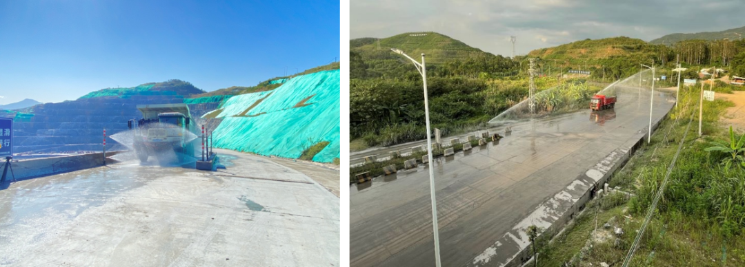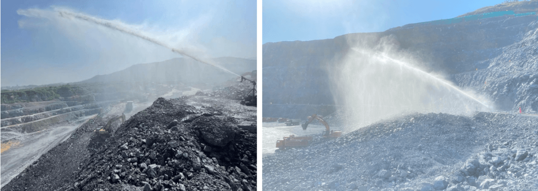 ?、?爆破、裝車(chē)、運(yùn)輸:全礦建設(shè)“智慧礦山5G智能?chē)娏芤謮m系統(tǒng)”、“洗車(chē)臺(tái)”等環(huán)保設(shè)施,裝機(jī)功率450KW,單個(gè)噴槍覆蓋直徑可達(dá)160米,目前礦區(qū)安裝大噴槍20個(gè),礦區(qū)道路安裝小噴槍200個(gè),實(shí)現(xiàn)了2.6平方公里礦區(qū)和6公里運(yùn)礦道路全覆蓋,并采用全球領(lǐng)先的5G系統(tǒng)中央集中控制,日噴淋用水量約1000m³。