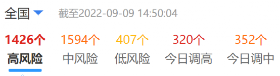 據(jù)公開消息,截止9月9日14時50分,全國高風(fēng)險地區(qū)1426個。當(dāng)日調(diào)高320個。中風(fēng)險1594個,當(dāng)日調(diào)中352個。高風(fēng)險區(qū)域分別分布于黑龍江、四川、新疆、吉林、貴州、青海、內(nèi)蒙古、廣西、江西、西藏、廣東、海南、山東、遼寧、天津、湖北、河南、北京、陜西、甘肅、安徽、上海、江蘇等23個省市自治區(qū)區(qū)域內(nèi)。