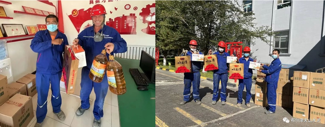伊犁天山水泥為員工發(fā)放中秋慰問品,送節(jié)日祝福
