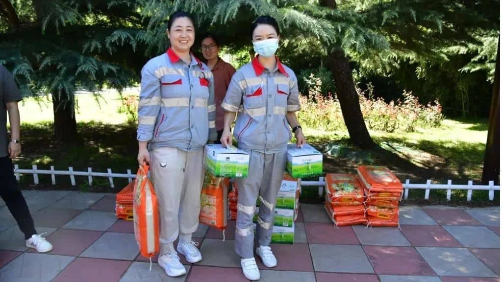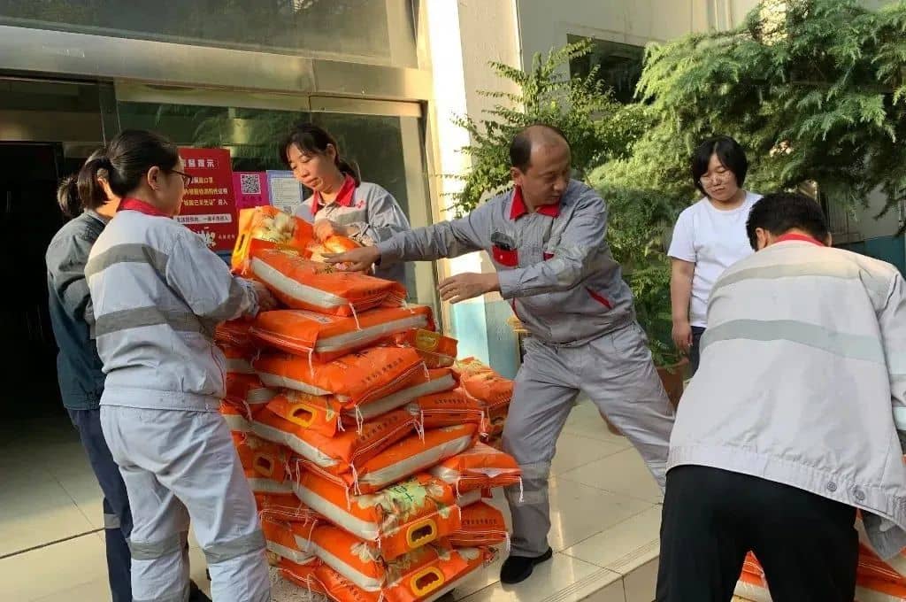 “每人兩袋大米,我和媳婦四袋,今天就不心疼媳婦啦,太重了!”生產(chǎn)車間肖克來提開著玩笑說道。