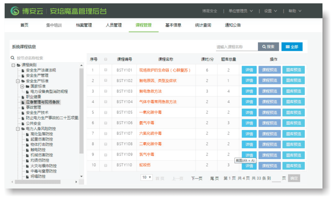 安培魔盒內(nèi)置專業(yè)、權(quán)威、系統(tǒng)的視頻課件與考核題庫,滿足不同專業(yè)、崗位、層級的人員培訓與考核。