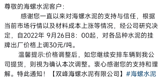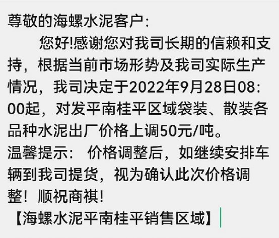 海螺漲價只發(fā)調(diào)價消息,不見蓋章公函