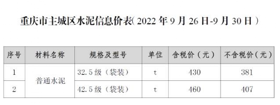 重慶主城區(qū),冀東水泥、西南水泥、海螺水泥多個品牌企業(yè)競爭市場。9月底造價處發(fā)布的信息價為42.5級袋裝報價407-460元/噸。主要品牌企業(yè)出廠報價300-330元/噸,市場報價卻高達(dá)500-510元/噸。