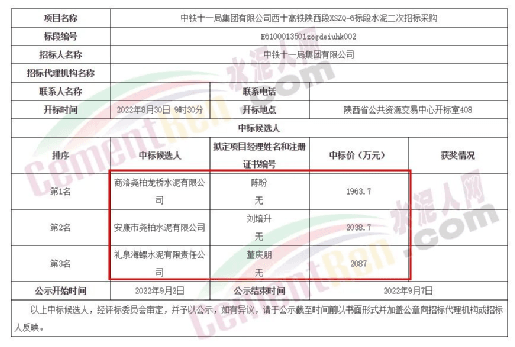 9月初,陜西區(qū)域,中鐵十一局某項(xiàng)目水泥招標(biāo),中標(biāo)候選人包括兩家堯柏水泥和一家海螺水泥。從排序來看,海螺水泥位于第3名,中標(biāo)價與兩家堯柏水泥相差123.3萬元和48.3萬元,而這第3名等同于沒有中標(biāo)。
