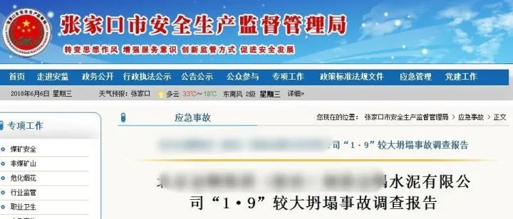 2018年1月9日,河北張家口市某水泥公司在進(jìn)行3#水泥儲(chǔ)存庫(kù)清庫(kù)作業(yè)時(shí),倉(cāng)壁板結(jié)水泥及料粉大量塌落,造成清倉(cāng)工程外委單位某公司6名現(xiàn)場(chǎng)作業(yè)人員死亡,直接經(jīng)濟(jì)損失約599萬(wàn)元。