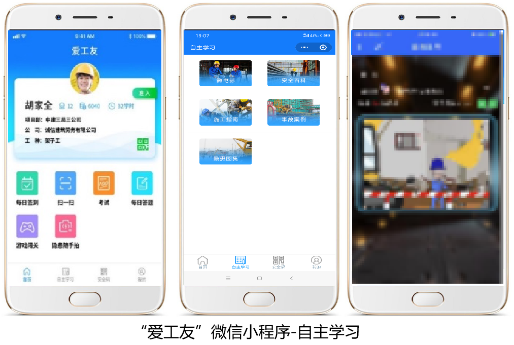 企業(yè)相關(guān)方人員可使用“愛工友”微信小程序 進(jìn)行簽到考試和自主學(xué)習(xí),內(nèi)含豐富的學(xué)習(xí)資源,包括安全微電影、安全百科知識(shí)、事故案例、隱患圖集以及安全小游戲等。