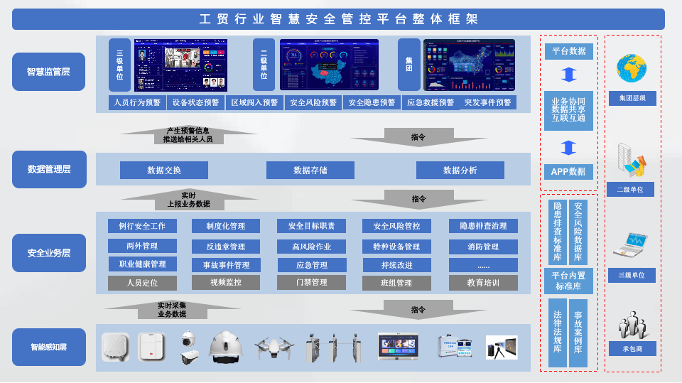 通過(guò)構(gòu)建集團(tuán)、二級(jí)單位和三級(jí)單位統(tǒng)一應(yīng)用平臺(tái),實(shí)現(xiàn)“安全管理數(shù)據(jù)”上下貫通、左右協(xié)同。