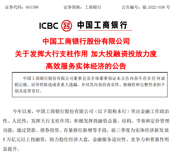 16日晚間,工、農(nóng)、中、建、交五大國有銀行均發(fā)布公告,表示加強(qiáng)對實(shí)體經(jīng)濟(jì)的支持力度。