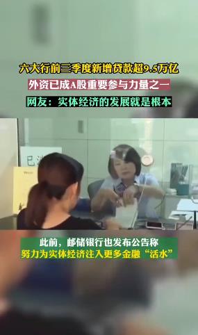 相關(guān)數(shù)據(jù)顯示,工、農(nóng)、中、建、交、郵儲六大行前三季度新增貸款超9.5萬億。