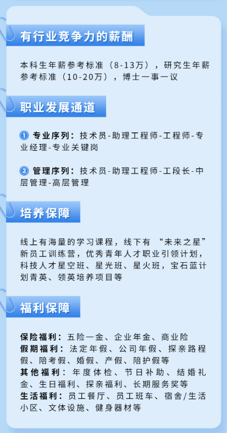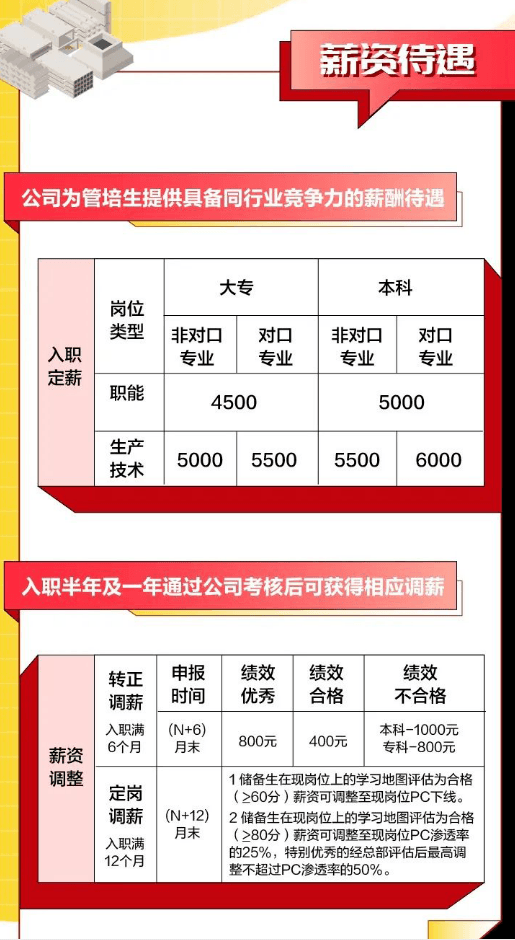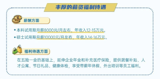 月薪:碩士研究生8000元/月(985/211院校9000元/月),第一批次本科6500元/月(985/211院校7000元/月),第二批次本科6000元/月,大專5500元/月;