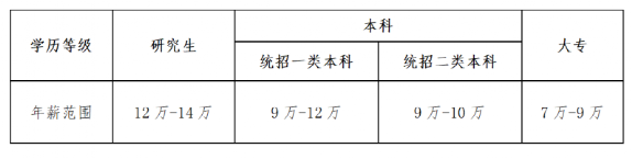 一類本科年收9-12萬,研究生12-14萬,大專7萬~9萬;