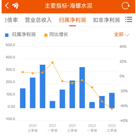 從各報(bào)告期來看,自2021年半年報(bào)開始,海螺水泥各期內(nèi)的盈利水平同比都呈現(xiàn)負(fù)增長。2022年至今,各期凈利潤同比仍是負(fù)增長,且降幅進(jìn)一步擴(kuò)大。