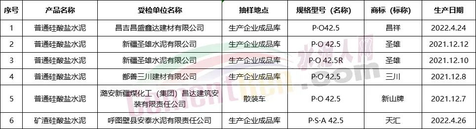 據(jù)通告,本次抽查的通用硅酸鹽水泥產(chǎn)品,在生產(chǎn)領(lǐng)域抽查了74家企業(yè)的90批次產(chǎn)品,檢出6批次產(chǎn)品不合格,不合格項(xiàng)目為氯離子。