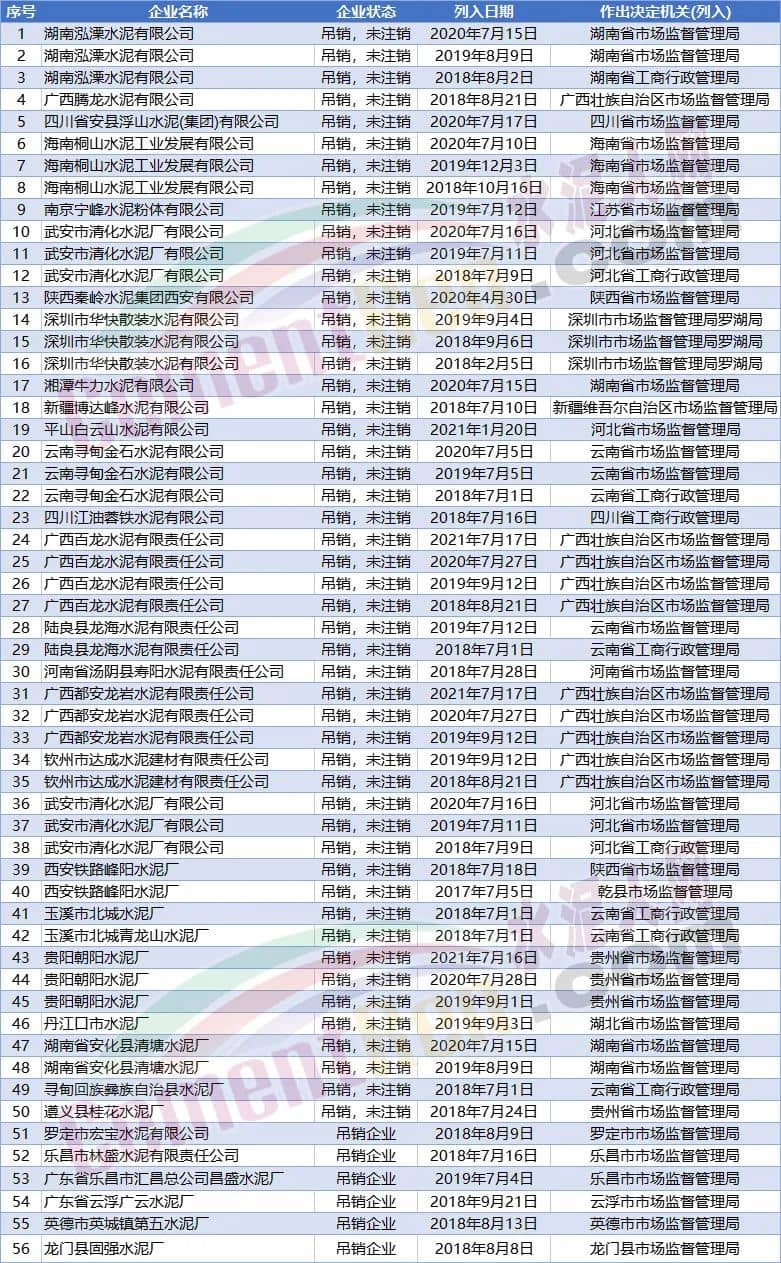 據(jù)水泥人網(wǎng)查詢,近年來(lái)被列入嚴(yán)重違法失信的水泥企業(yè)并非只有這一家。僅2022年1月至今就有70家水泥企業(yè)被列嚴(yán)重違法失信企業(yè)名單。