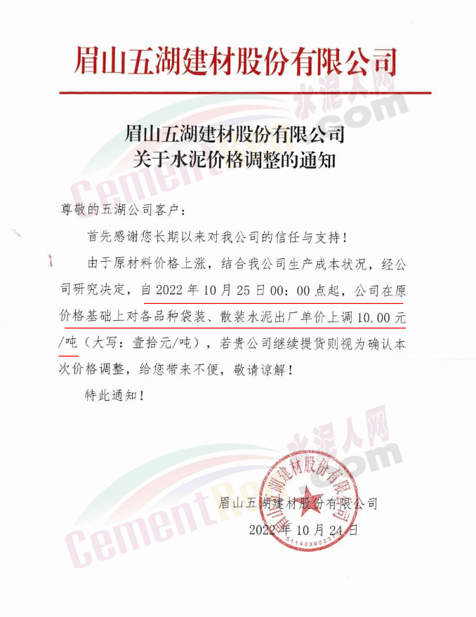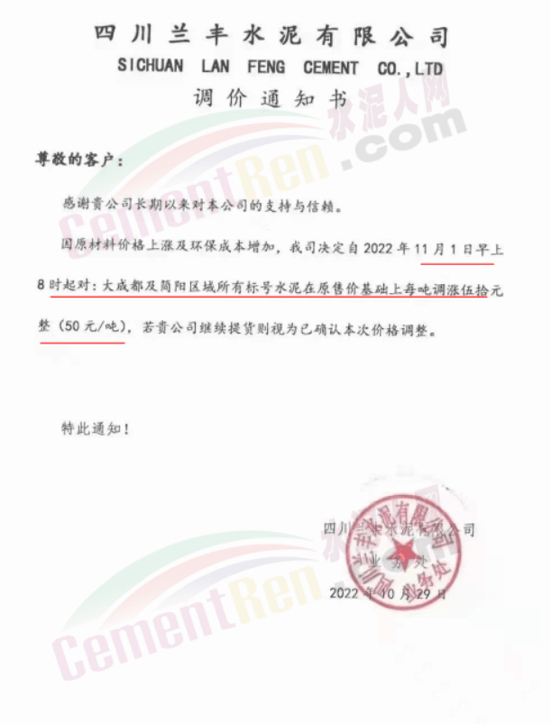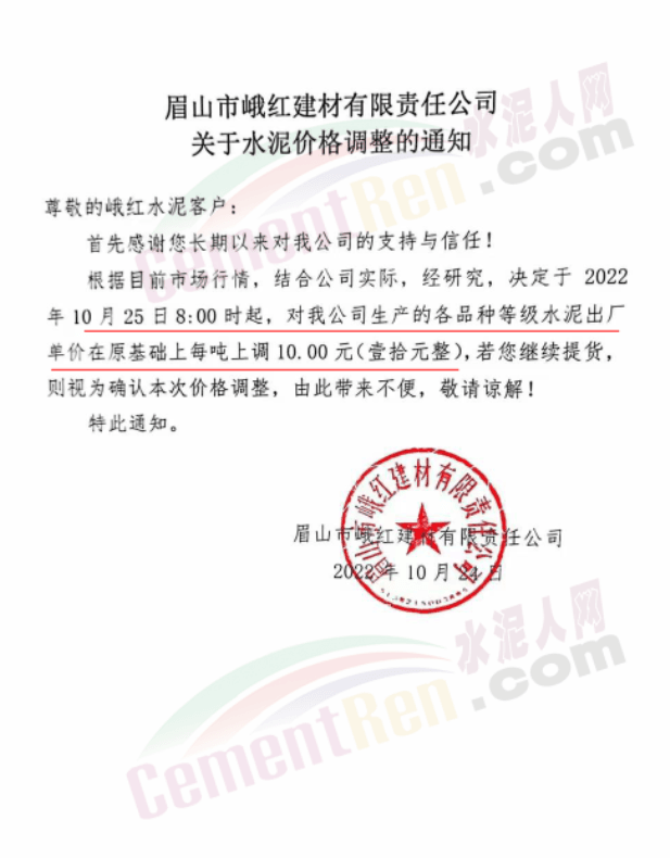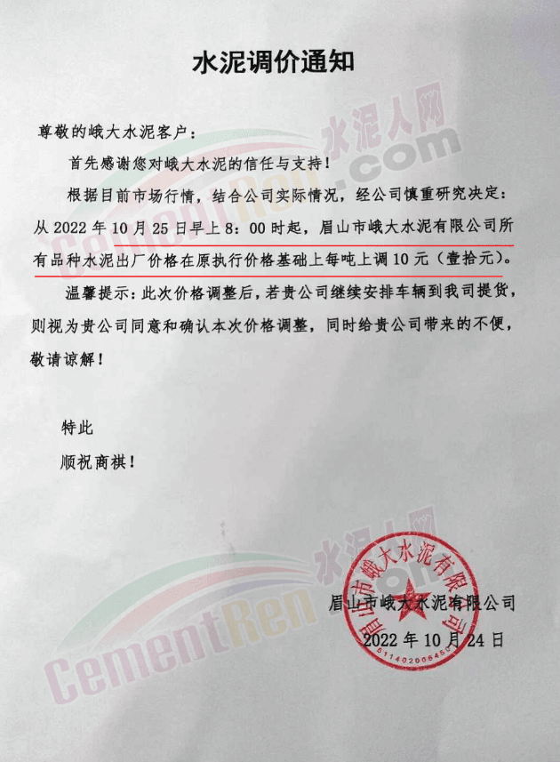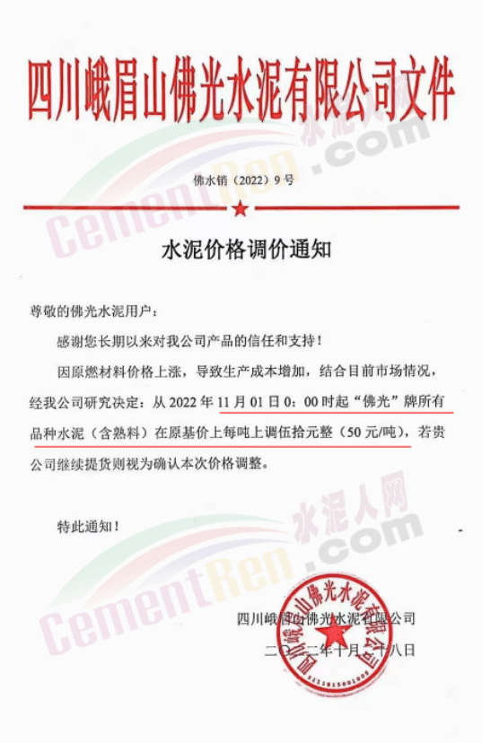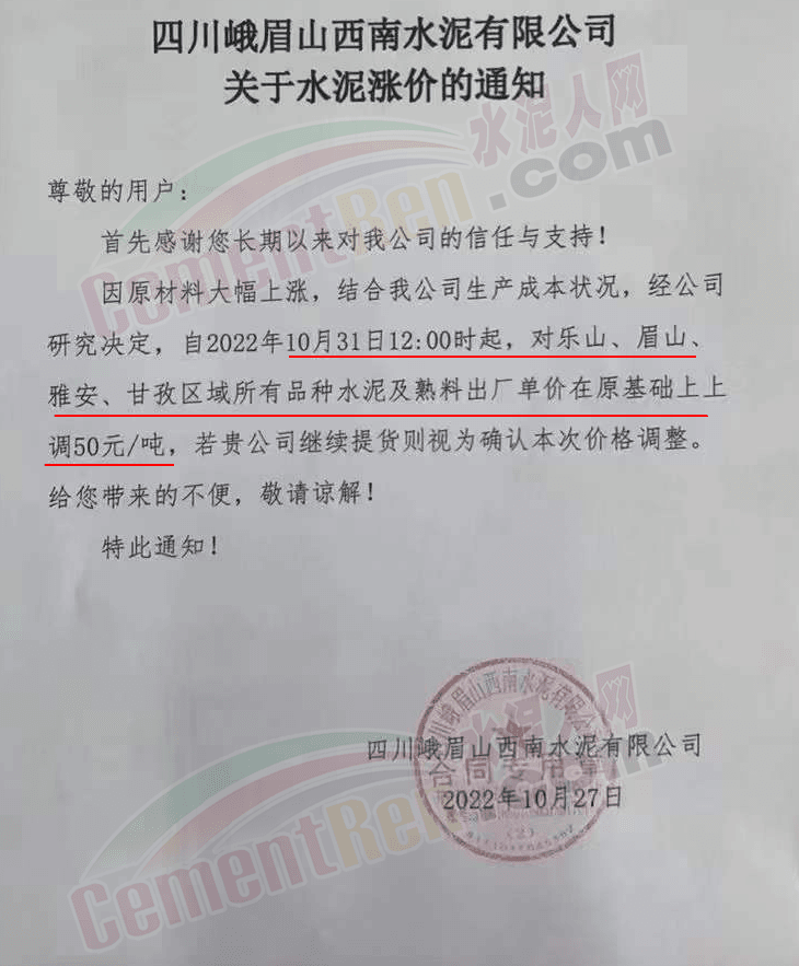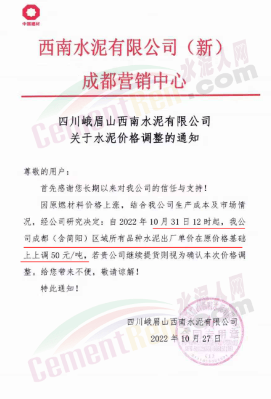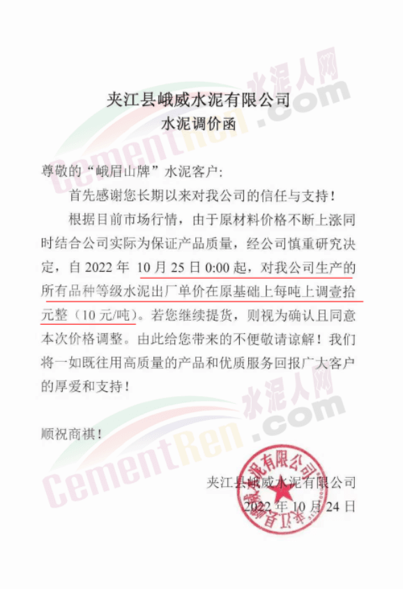 據(jù)了解,本輪調(diào)價(jià)是從10月30日起,包括粉磨站在內(nèi)的多家水泥企業(yè)通知上調(diào)水泥價(jià)格50元/噸,熟料價(jià)格同步上調(diào)30元/噸。