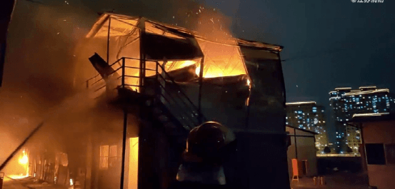 2022年3月6日,常州,一處工地宿舍起火,工人及時(shí)逃離。消防員趕到后發(fā)現(xiàn),現(xiàn)場是一排兩層彩鋼瓦結(jié)構(gòu)的簡易宿舍樓,彩鋼瓦在高溫的炙烤下已經(jīng)發(fā)生變形,消防員一邊撲救,一邊大喊房子里的人撤離。