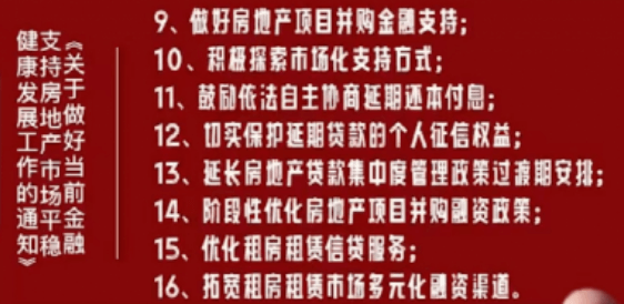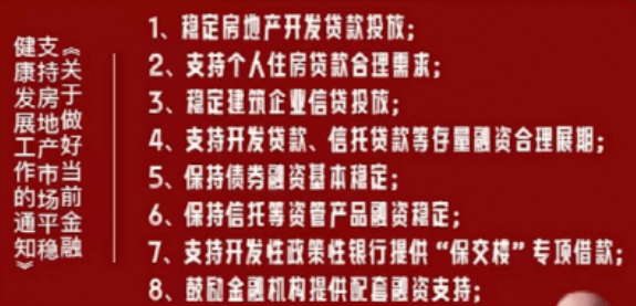 據(jù)了解,“三支箭”系列利好政策還包括:適時(shí)適度運(yùn)用降準(zhǔn)等貨幣政策工具,保持流動(dòng)性合理充裕;人民銀行、銀保監(jiān)會(huì)正式發(fā)布16條金融舉措,全面支持樓市平穩(wěn)健康發(fā)展。