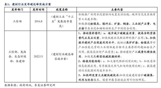 建材行業(yè)碳達(dá)峰方案出臺,推動碳捕集技術(shù)及低碳原料替代,明確降低碳排放強(qiáng)度。