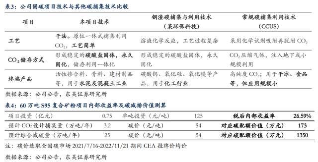 優(yōu)勢二:低成本捕碳&碳價(jià)值彈性85.69%,產(chǎn)品替代水泥熟料&礦粉節(jié)約水泥企業(yè)成本。