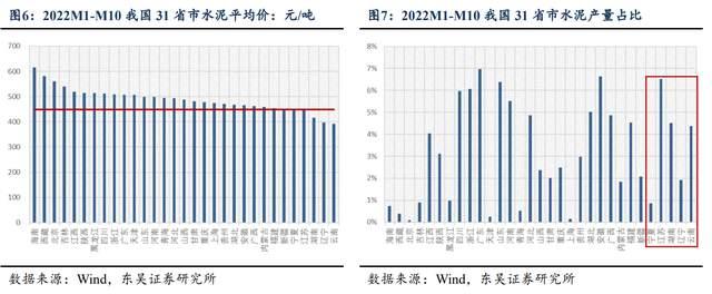 2022年1-10月,河南水泥平均價(jià)達(dá)497.98元/噸,低于河南水泥均價(jià)10%的區(qū)域主要為寧夏、江蘇、湖南、遼寧、云南,其產(chǎn)量占全國產(chǎn)量比重為18.22%。