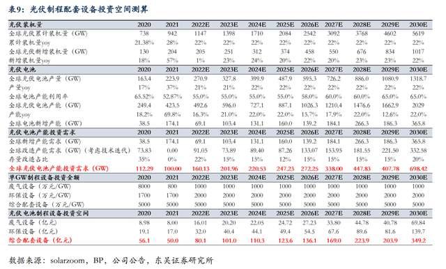 新能源革命促2021-2030年光伏新增裝機(jī)量十年復(fù)合增速23%,2030年光伏制程配套設(shè)備需求近350億元。