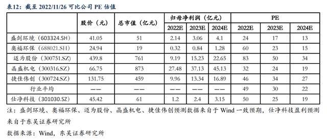 我們選取半導(dǎo)體領(lǐng)域尾氣設(shè)備領(lǐng)先公司盛劍環(huán)境、國內(nèi)蜂窩陶瓷載體龍頭奧福環(huán)保以及光伏設(shè)備頭部公司邁為股份、晶盛機(jī)電、捷佳偉創(chuàng)作為可比公司,公司作為光伏配套尾氣治理設(shè)備龍頭,2023-2024年估值較可比公司具備提升空間。