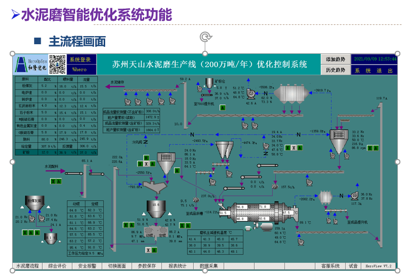 3.創(chuàng)造性地在水泥生產(chǎn)過程中采用了“自尋優(yōu)”算法,結(jié)合機理模型、數(shù)據(jù)模型和專家經(jīng)驗三者進(jìn)行變步長、變周期尋優(yōu),使系統(tǒng)始終運行在最佳工況,控制主界面如下圖: