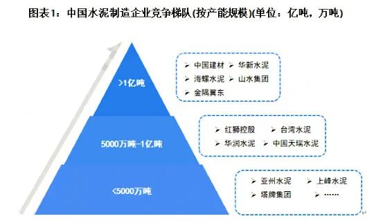 各大龍頭企業(yè)按年產(chǎn)能劃分,可分為3個競爭梯隊(duì)。其中,年產(chǎn)能大于1億噸的企業(yè)有中國建材 、海螺水泥、華新水泥、山水水泥、金隅冀東;年產(chǎn)能在5000萬噸至1億噸之間的企業(yè)有紅獅、臺泥、華潤、天瑞等,其余企業(yè)的年產(chǎn)能多在5000萬噸以下。其中中國建材、海螺水泥、金隅冀東三大龍頭占據(jù)了水泥行業(yè)總產(chǎn)能的37.69%,產(chǎn)能排名前十的企業(yè)合計占比達(dá)57%。且絕大多數(shù)都有在利用并購重組等方式增強(qiáng)自身競爭力。