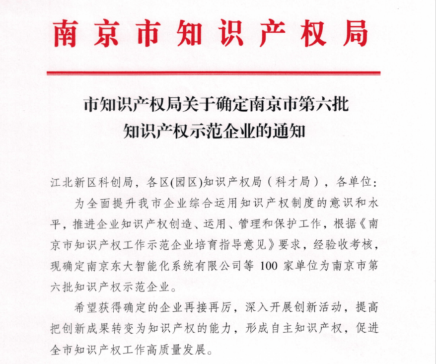 近日,南京市知識產(chǎn)權局公布了第六批“南京市知識產(chǎn)權示范企業(yè)”名單,南京永能新材料有限公司成功入選。