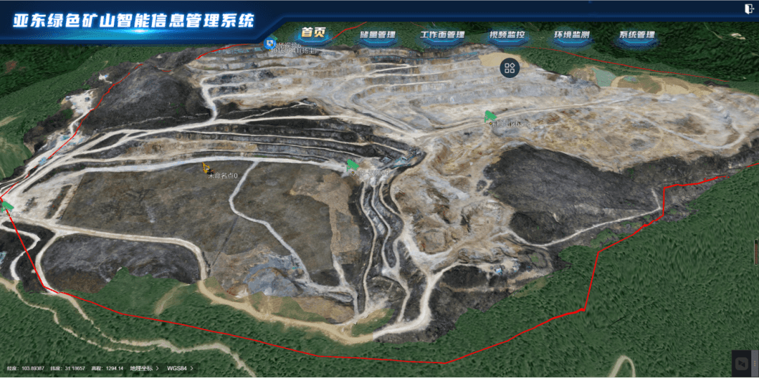 為了精準(zhǔn)開采、綠色開采,亞東水泥建成了黃岡亞東、江西亞東及四川亞東礦山三維可視化系統(tǒng)模組,提供礦山可視化展示效果,全方位展示礦山采區(qū)生產(chǎn)信息、復(fù)墾綠化及環(huán)境監(jiān)測(粉塵、噪音等)等內(nèi)容。三維分析測量工具可減少生產(chǎn)中的測量作業(yè)工作,模型高程和水平量測精度優(yōu)于10cm/像素點(diǎn),可以達(dá)到 1:500 比例尺的精度,提高工作效率。