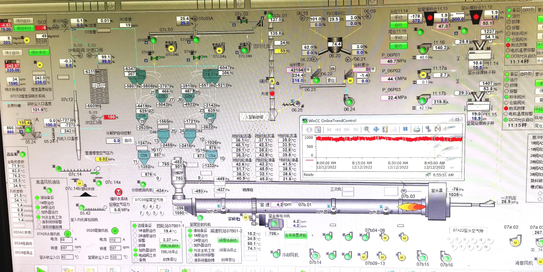 目前系統(tǒng)運(yùn)行穩(wěn)定:NOx 排放濃度從原來控制 300mg/m3 以下,降低到100mg/m3以下;在降低排放濃度的同時,氨水用量比之前降低了 27.4%;熱耗比之前降低了 11.19%;余熱發(fā)電量也有所增加。系統(tǒng)產(chǎn)量遠(yuǎn)遠(yuǎn)超過該廠建廠以來的歷史最高水平。