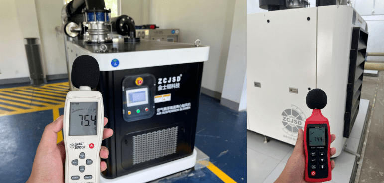 我們的設備運行噪音在80分貝以內(nèi),解決了羅茨風機、多級離心風機、單級高速風機等噪音極高的問題。