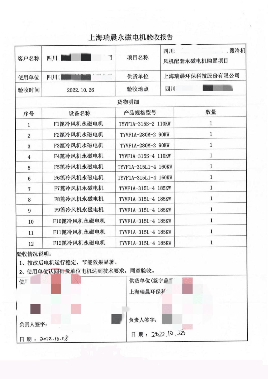 在篦冷風(fēng)機(jī)和永磁電機(jī)正常運(yùn)行后,該水泥企業(yè)聯(lián)合瑞晨環(huán)保和第三方對(duì)其進(jìn)行驗(yàn)收,驗(yàn)收?qǐng)?bào)告如下所示: