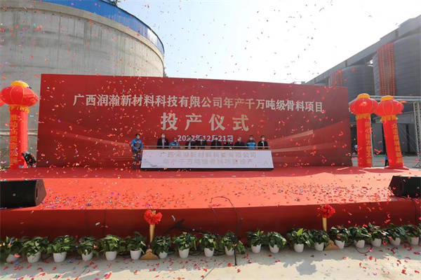 圖:2022年12月21日,廣西瀚潤(rùn)新材料科技有限公司年產(chǎn)千萬噸骨料項(xiàng)目投產(chǎn)