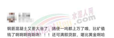 另一經(jīng)銷(xiāo)商發(fā)視頻稱“鋼筋混凝土又要大漲了,隨便一噸都上萬(wàn)了。比礦值錢(qián)了,還可滿額貸款,堪比黃金啊!”