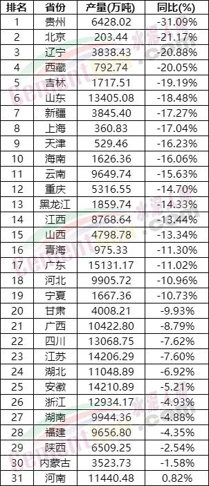 國(guó)家統(tǒng)計(jì)局?jǐn)?shù)據(jù)顯示,12月水泥產(chǎn)量為1.68億噸,同比下降12.3%;2022年產(chǎn)量為21.18億噸,同比下降10.8%。從分省數(shù)據(jù)來(lái)看,2022年全國(guó)4個(gè)省市水泥產(chǎn)量降幅超20%,貴州降31.09%、北京降21.17%、遼寧降20.88%、西藏降20.05%。