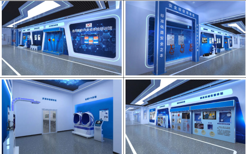 金隅冀東水泥合川有限公司智能VR安全體驗(yàn)培訓(xùn)館分為前廳、安全防護(hù)認(rèn)知區(qū)、事故傷害實(shí)訓(xùn)區(qū)、多媒體智慧教室、VR事故體驗(yàn)區(qū)共五大功能區(qū),采用“正向?qū)嵱?xùn)、逆向體驗(yàn)、安全互動(dòng)”的安全培訓(xùn)創(chuàng)新模式。