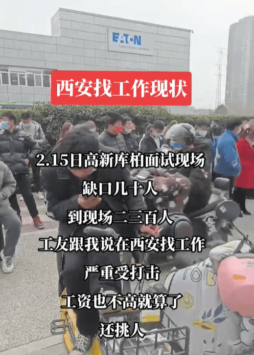 多家電子廠門口人流涌動,黑壓壓的人群并非做生意的,而是來找工作的,部分工廠錄取比例只有10%不到,且工價也不再是人人艷羨的高價了。美利達(dá)自行車廠19塊錢一小時的工價,長白班僅10個人的缺口來了300多人;新能安250個人爭搶80個崗位名額;西安高新庫柏面試現(xiàn)場,缺口幾十人,現(xiàn)場有300多人,工友表示嚴(yán)重受打擊,工資不高還挑人。