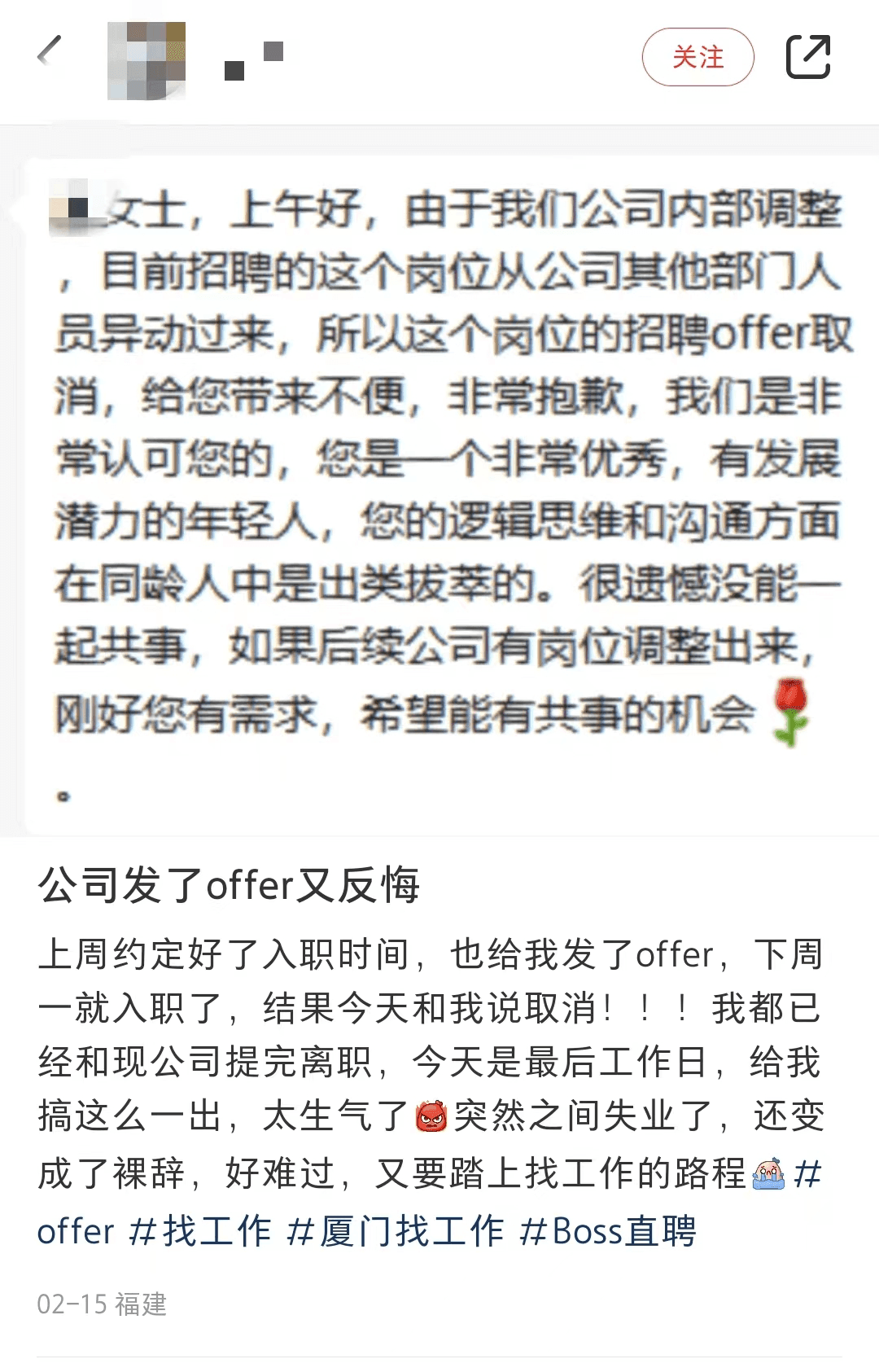 某網(wǎng)友曬出打工人應(yīng)聘的現(xiàn)狀,建議年齡大的老鄉(xiāng)過一段時間再出來。