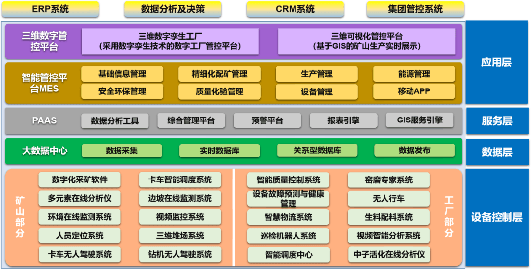 東方測控水泥智能工廠系統(tǒng)集成解決方案是一套全流程整體解決方案。該方案以節(jié)能降耗、精益生產(chǎn)為目標(biāo),建設(shè)石灰石數(shù)字礦山系統(tǒng)、卡車智能調(diào)度系統(tǒng)、水泥生產(chǎn)兩磨一窯智能控制和過程質(zhì)量控制以及智慧物流、設(shè)備故障與健康管理系統(tǒng)、生料配料分析儀、智能質(zhì)量控制系統(tǒng)等系列智能化系統(tǒng),實(shí)現(xiàn)生產(chǎn)智能控制。利用數(shù)字化協(xié)同、大數(shù)據(jù)分析技術(shù)實(shí)現(xiàn)智能管理,智慧決策。目前水泥智能工廠系統(tǒng)集成解決方案已在海螺水泥、青松建化等大型水泥集團(tuán)成功應(yīng)用。