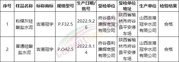 陜西省榆林市府谷縣市場監(jiān)督管理局抽檢2批次水泥產(chǎn)品,全部合格。