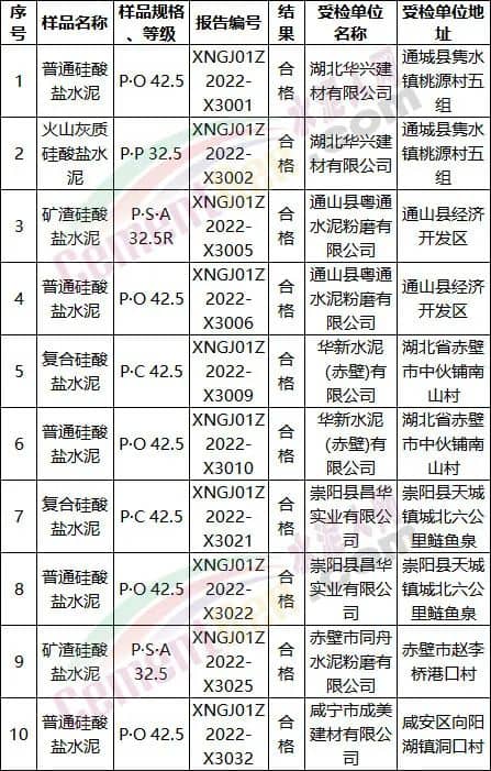湖北省咸寧市市場監(jiān)管局水泥產(chǎn)品質(zhì)量監(jiān)督,共抽查10批次水泥,全部合格。
