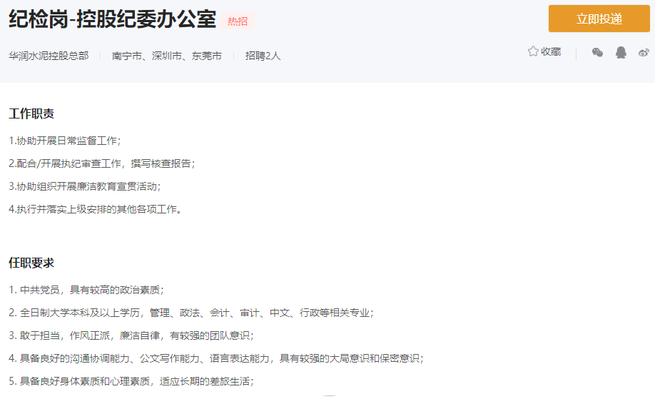 水泥人網(wǎng)注意到,華潤水泥目前熱招崗位分別是技術(shù)研發(fā)中心的技術(shù)研發(fā)崗和控股紀委辦公室的紀檢崗。