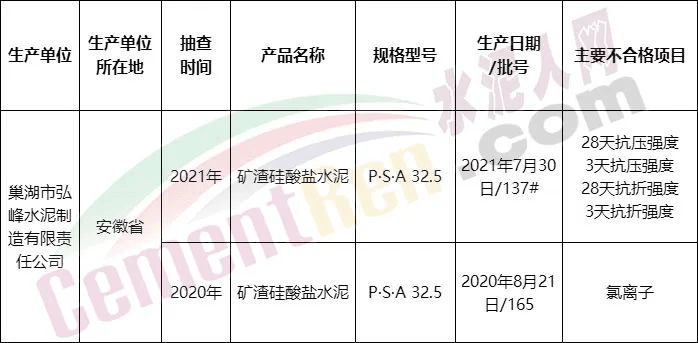 其中,國抽不合格企業(yè)名單共包含21家水泥企業(yè)。主要不合格項(xiàng)目為抗壓、抗折強(qiáng)度以及氯離子和水溶性鉻,且不合格企業(yè)中4家企業(yè)復(fù)檢仍不合格。