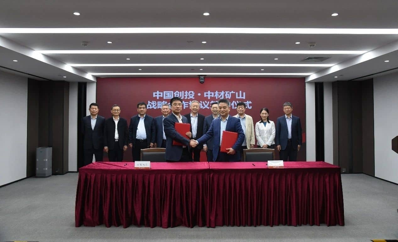 中材礦山總經(jīng)理張漢武與中國創(chuàng)投行政總裁李杰代表雙方簽署協(xié)議,雙方將本著友好合作、互惠互利、共同發(fā)展的原則,就投融資、礦山業(yè)務等領域展開深入合作。