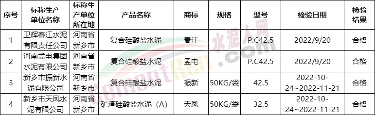 近期新鄉(xiāng)市公布的2022年市抽產(chǎn)品質(zhì)量監(jiān)督抽查結(jié)果顯示水泥行業(yè)生產(chǎn)領域共抽檢32批次水泥及20批次水泥包裝袋全部合格,其中也包括2022年4月26日抽檢的新鄉(xiāng)市豐收水泥廠生產(chǎn)的一個批次“佳豐”牌礦渣硅酸鹽水泥P.SA 32.5,抽檢結(jié)果為合格。(相關鏈接:通告:河南新鄉(xiāng)32批次水泥,20批次包裝袋抽檢結(jié)果公布)。