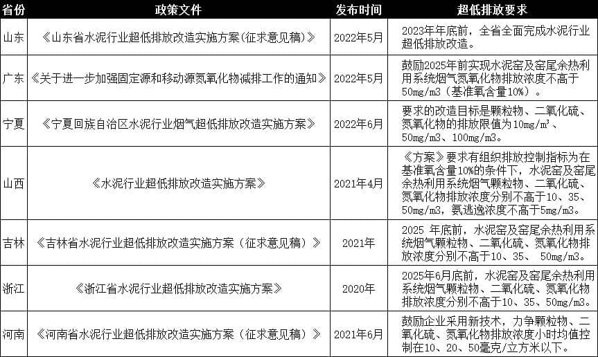 為了響應(yīng)國家政策,國內(nèi)不少省份如廣東、山東、浙江、寧夏、山西等已經(jīng)根據(jù)自身實際制定并收緊了水泥行業(yè)超低排放標(biāo)準。具體情況如下: