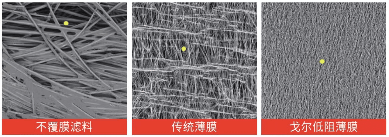 GORE®低阻濾袋采用第5代ePTFE低阻透氣膜,表面更細密光滑,極易清灰。在清灰時所需要的壓縮空氣集齊所需能量就更少,從而延長濾袋的使用壽命。