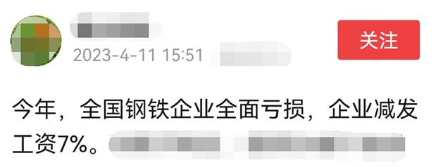 今年,全國鋼鐵企業(yè)全面虧損,企業(yè)減發(fā)工資7%。