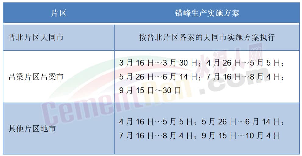 《山西省水泥行業(yè)2023-2024年錯峰生產(chǎn)工作實(shí)施方案》要求所有水泥熟料生產(chǎn)線非采暖錯峰生產(chǎn)次數(shù)不少于三次;其中完成超低排放改造的企業(yè)不少于60天,未完成超低排放改造的企業(yè)不少于70天。